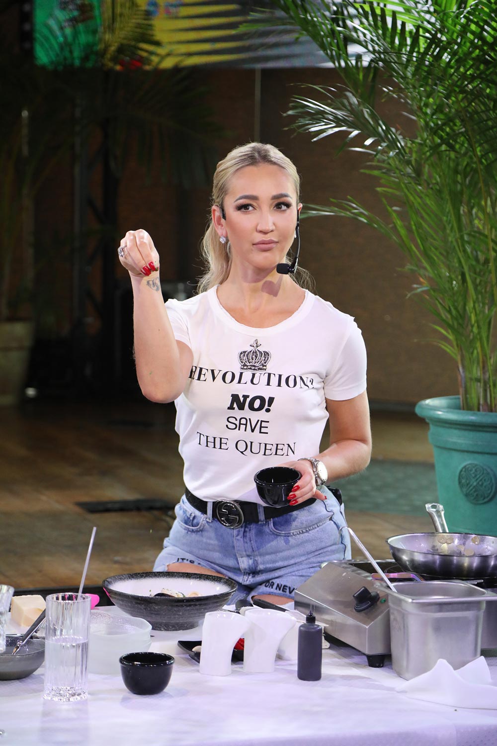 К гостям, ждущим блюда с кухни Бузовой, она обратилась с вопросом: почему салат готовят раньше пасты? Блогер Юля Гаврилина, с которой Ольга познакомилась на съёмках шоу «Звёзды в Африке», не смогла ответить на вопрос и призналась, что совсем не умеет готовить. Но всё же нашлись те, кто дал правильный ответ: паста просто остынет, если приготовить её раньше салата.