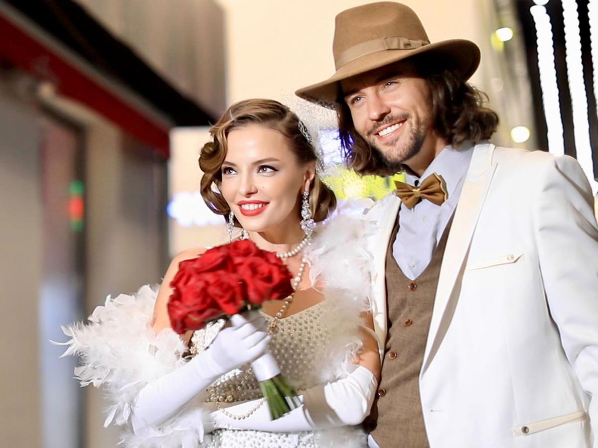 - Ну, во-первых, это красиво! Во-вторых, моя любимая музыка - джаз, а любимая еда моего возлюбленного - американские стейки! А в-третьих, нам не хотелось стандартную свадьбу «как у всех». Мы актеры и часто перевоплощаемся. Я обожаю все эти ретропрически, красную помаду, жемчуг, перчатки, шляпки, мундштуки и перья. А для многих гостей такой опыт - облачиться в образ гангстера или девицы из кабаре - был в первые. И я уверена, наша свадьба запомнится им на всю жизнь.