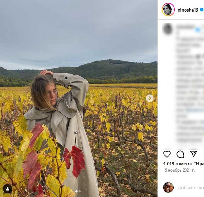 Нино запечатлелась в расстегнутом пальто посреди пожелтевших кустов. Ее волосы были растрепаны, а на лице застыло выражение грусти. Кадры быстро были растиражированы фанатскими сообществами, где люди принялись писать встревоженные комментарии. «Какая-то совсем грустная», «Максимка не обижает?», «Тоскливые карточки», – высказались россияне.