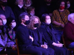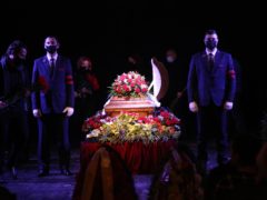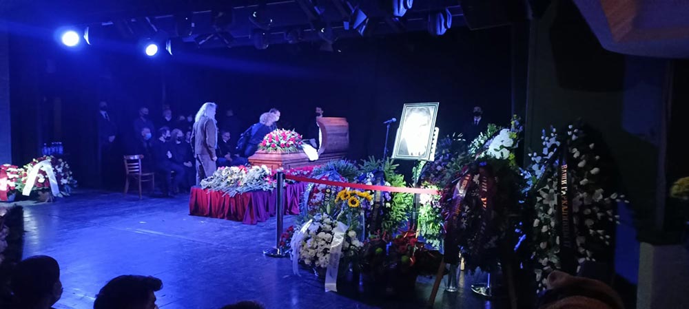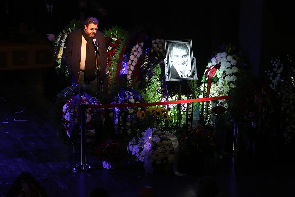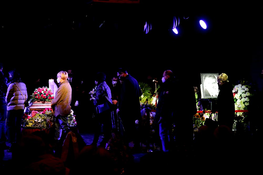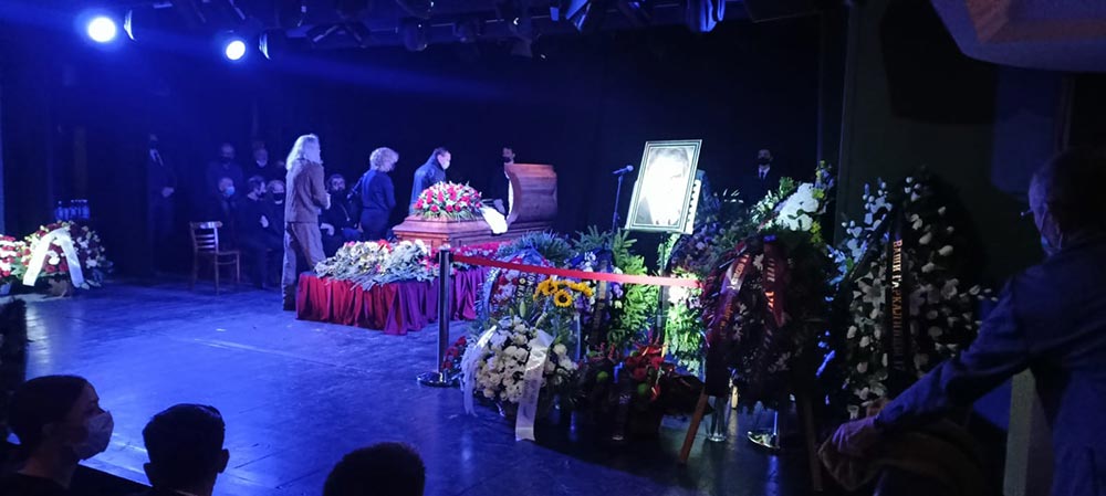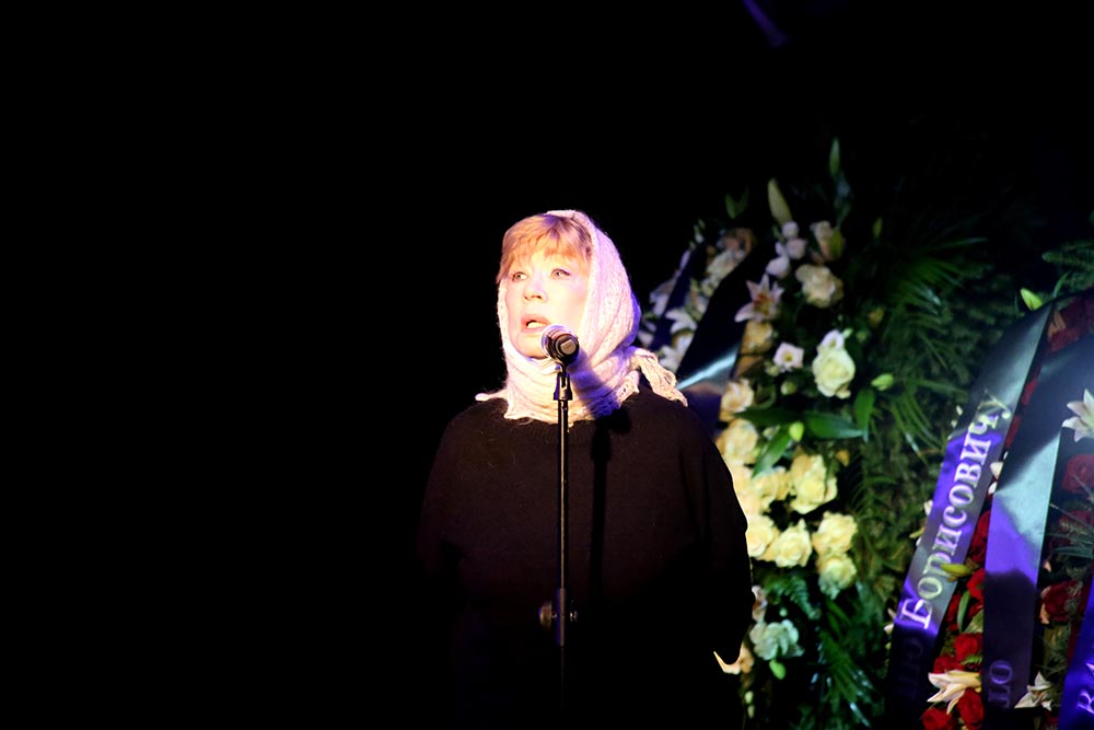 На сцене, рядом с гробом, сидели родные Валерия Борисовича: его дочь Ника и ее муж - актер Павел Акимкин. К ним с соболезнованиями подходили коллеги и друзья скончавшегося народного артиста России. А провел церемонию ректор ГИТИСа Григорий Заславский.