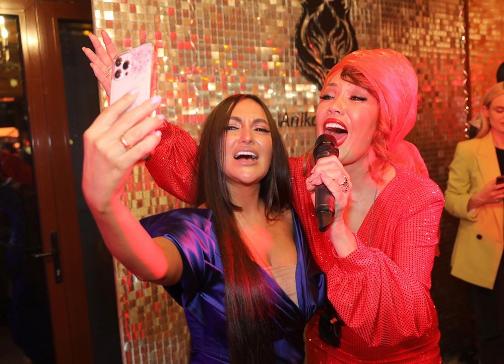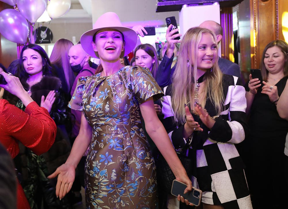 Когда Керимова советовала, что в эту новогоднюю ночь нужно отдать предпочтение нарядам из натуральных тканей (Тигр синтетику не любит) в золотой, серебряной и голубой цветовой гамме, в зале появилась 57-летняя Распутина. А прежде чем сотрясти зал своими хитами, обратилась к виновнице торжества: