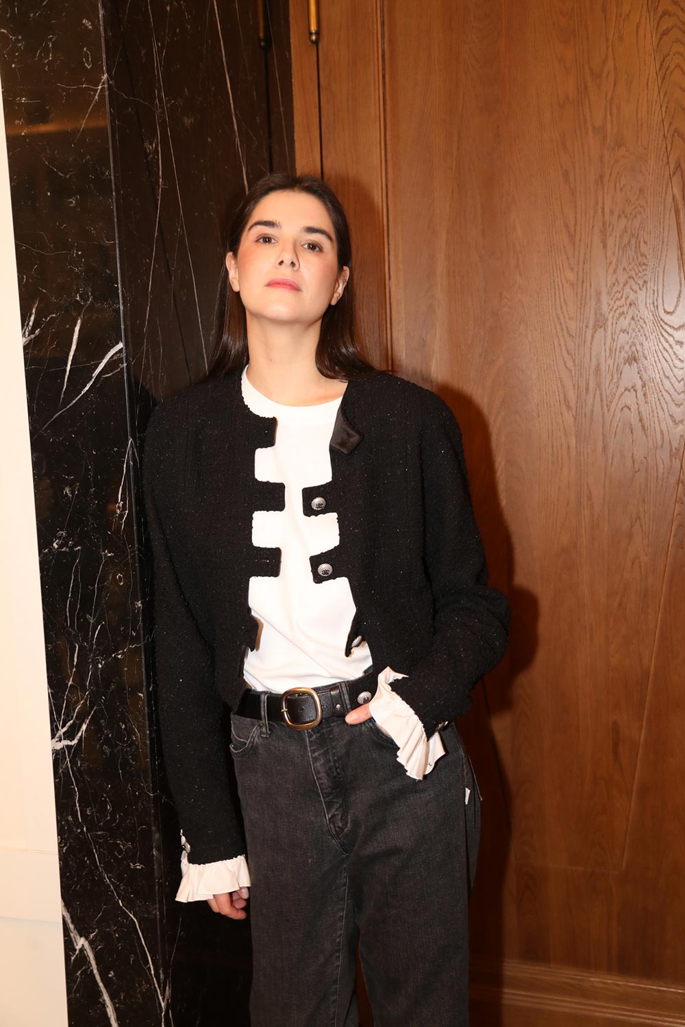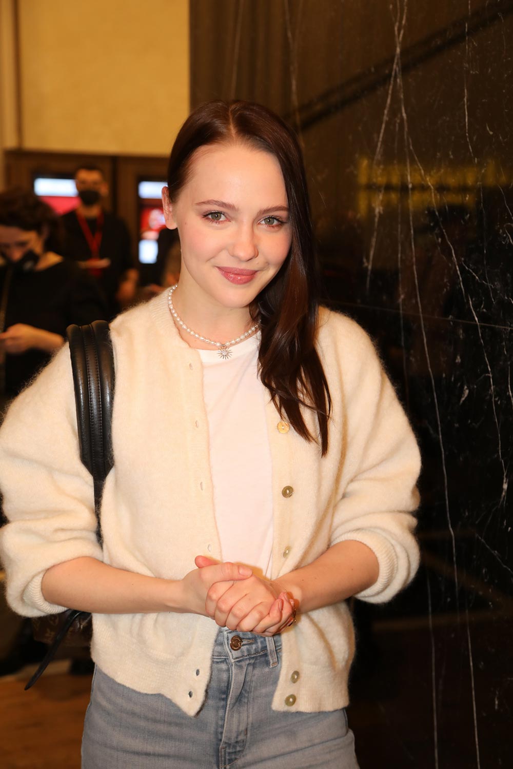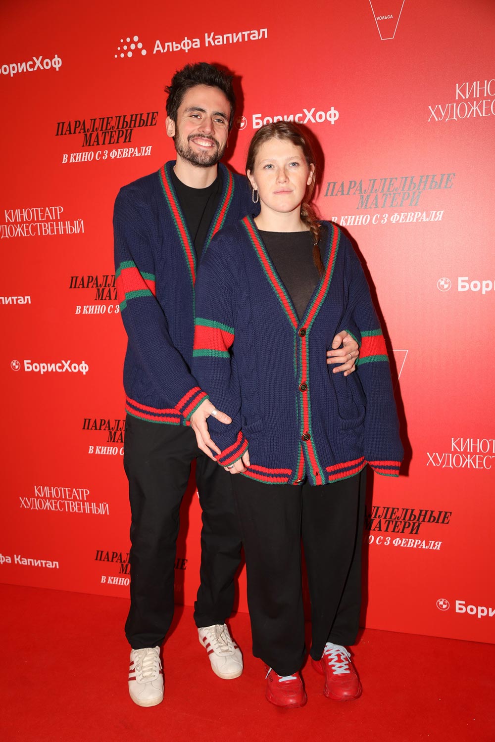 Также весьма эффектно выглядела звезда сериала «Чики» Варвара Шмыкова - вместе со своим бойфрендом, диджеем Даниилом Радловым, они пришли в одинаковых парных кардиганах.