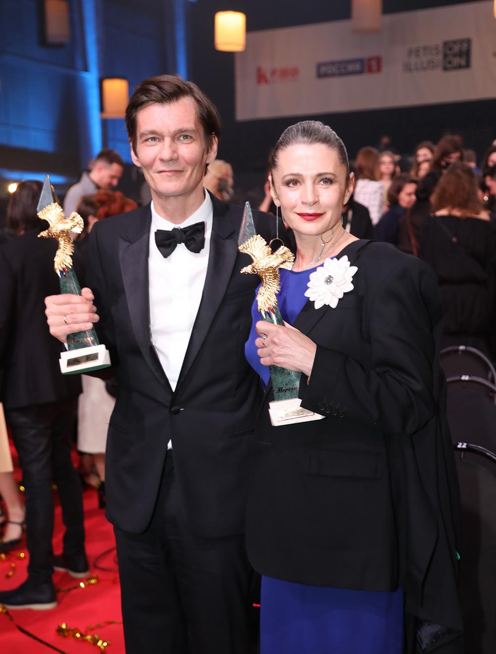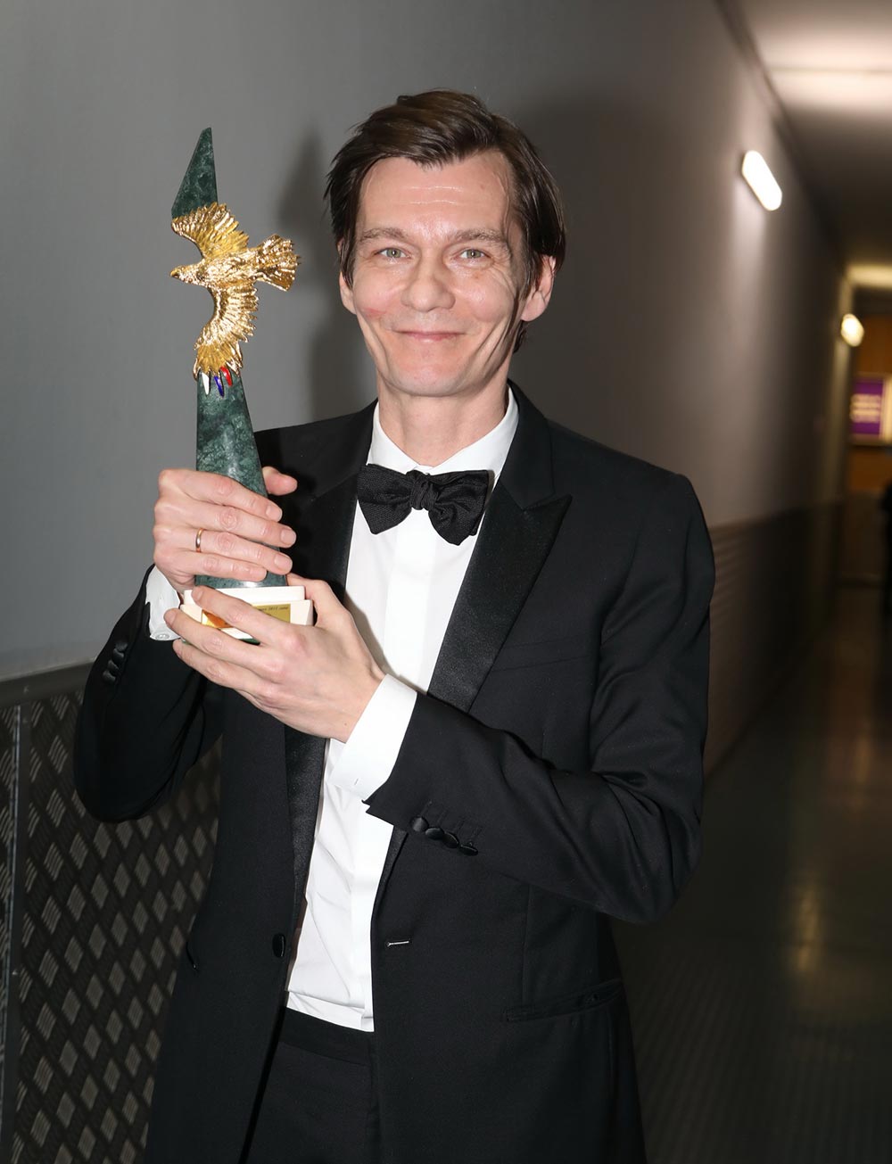 Награда за лучшую мужскую роль в кино досталась Филиппу Янковскому, фильм «Иван Денисович». Он признался, что это для него большая честь, особенно при условии, что они вместе с сыном получили призы в один день, что очень трогательно.