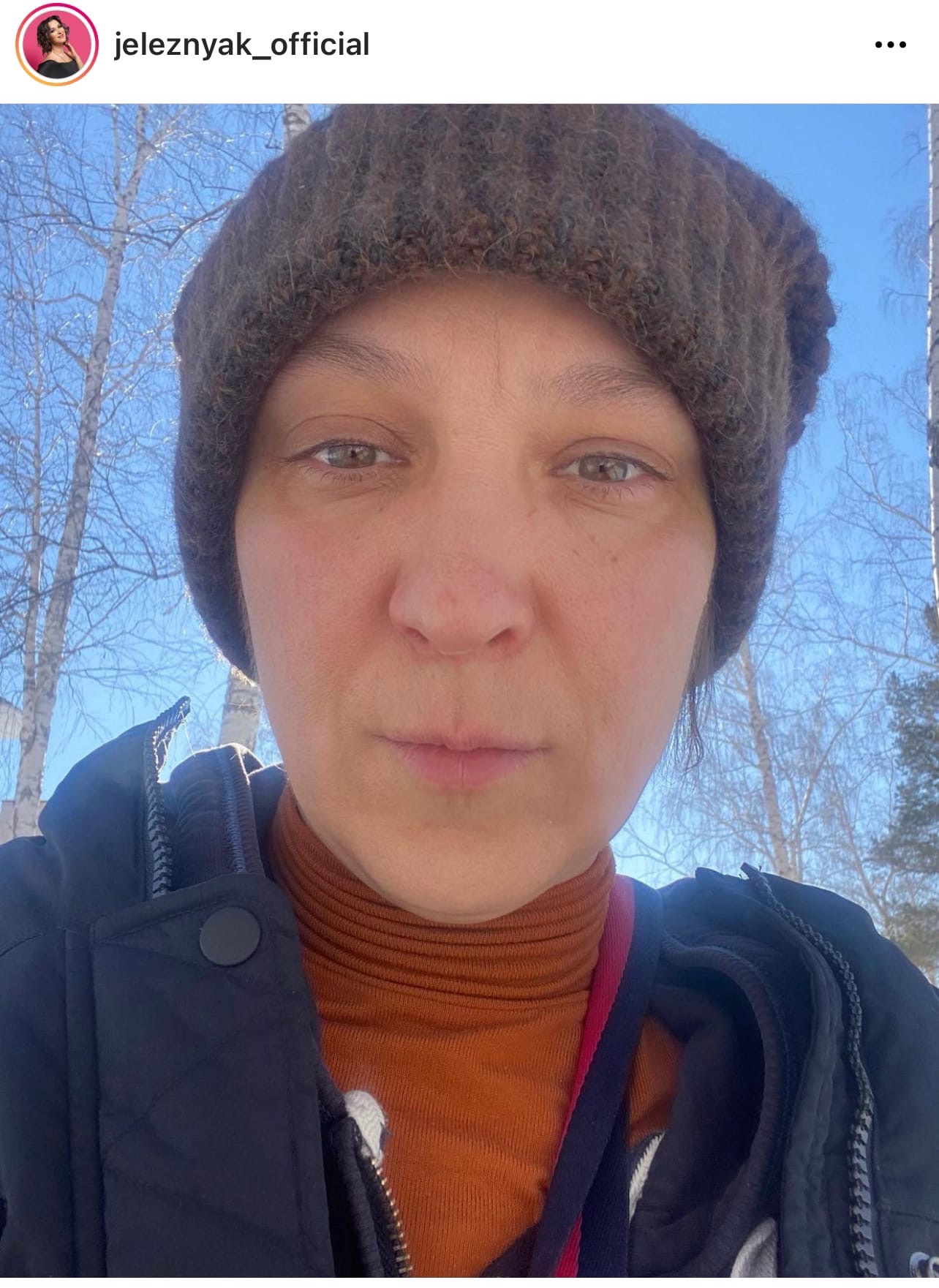 Поклонники обнаружили Железняк в заснеженном лесу. Заслуженная артистка России позировала в коричневой шапке, оранжевой водолазке и черной куртке, которая была расстегнута. При этом выражение ее лица было весьма печальным, а глаза излучали грусть.