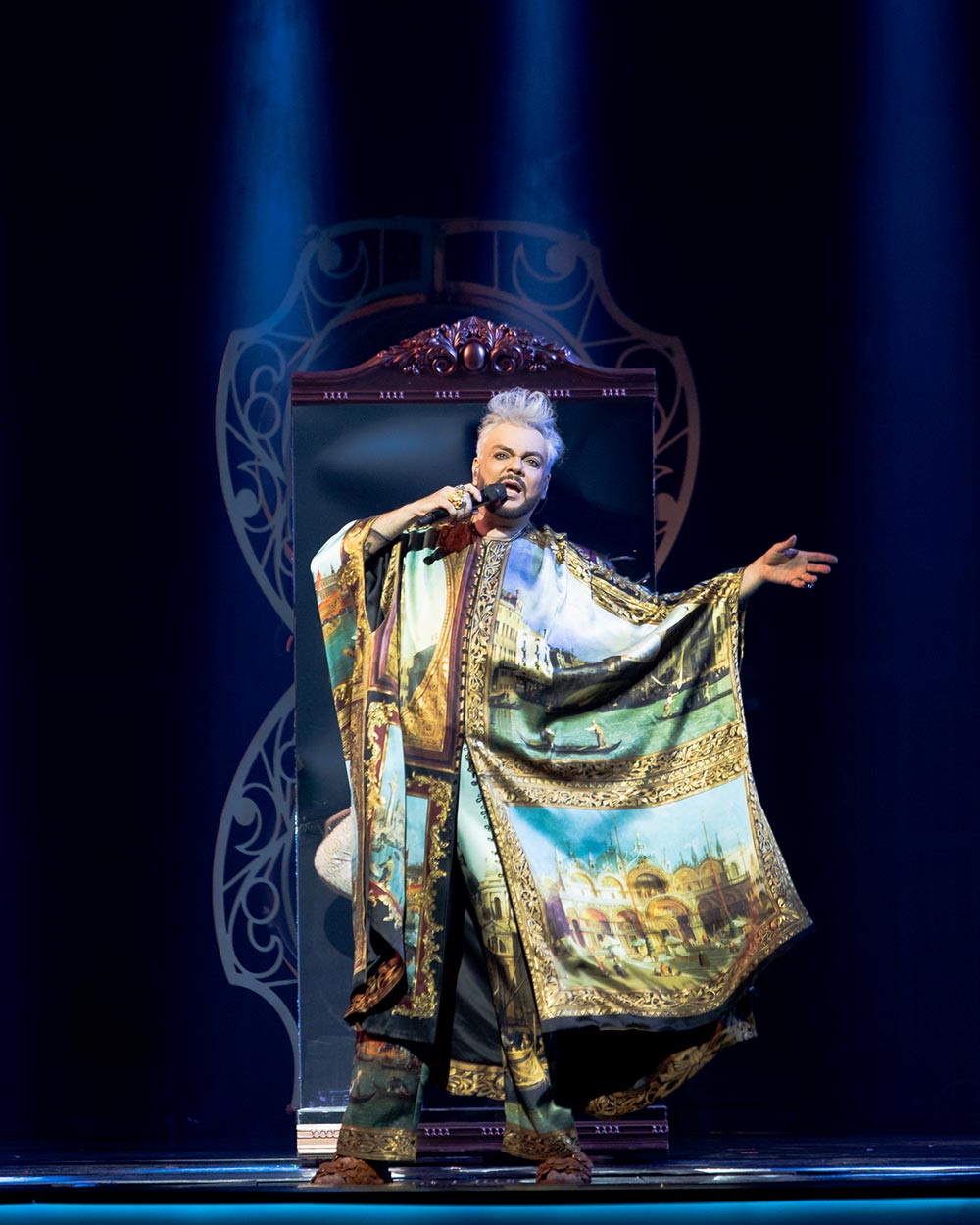 Огромное внимание Киркоров всегда уделяет живым выступлениям, создавая уникальные шоу. Это настоящая жизнь на сцене, где зрители становятся непосредственными участниками шоу.Каждый номер зритель будет видеть совершенно новую историю со своей внутренней драматургией.