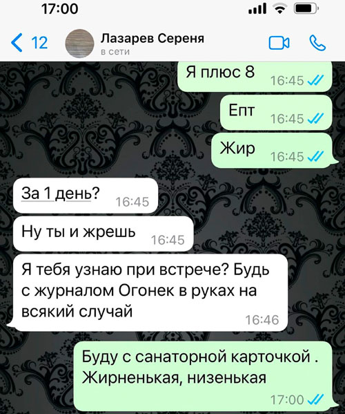 - Я плюс 8. Епт, жир, - писала Лера Сергею.