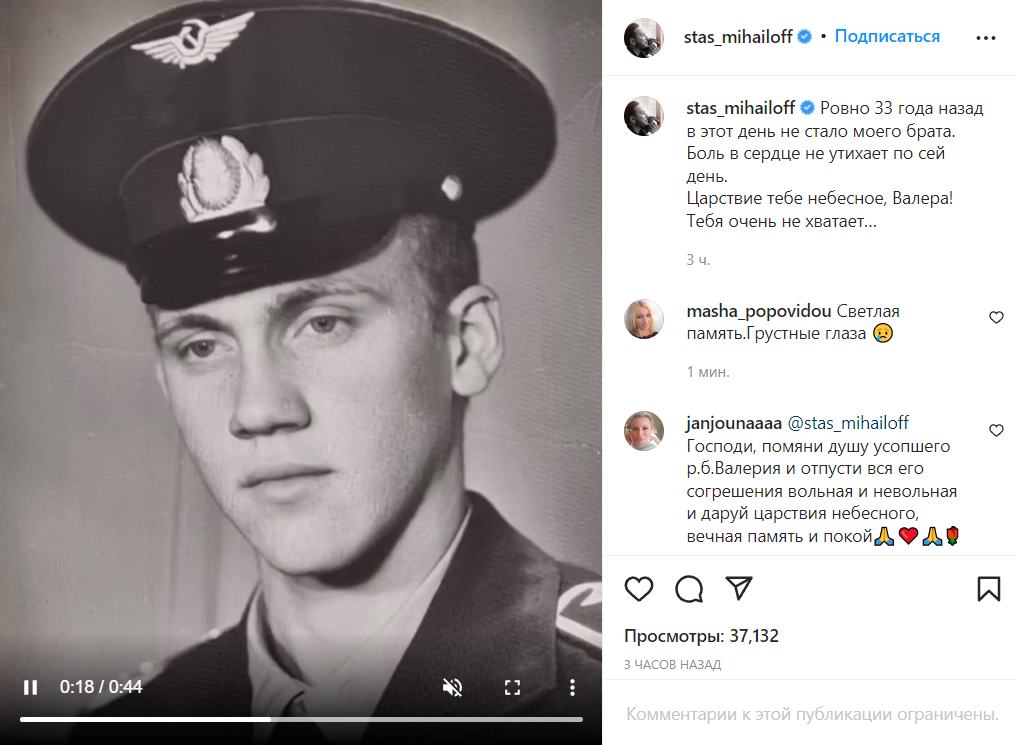 В личном инстаграм*-аккаунте Михайлов показал фото брата. Сегодня, 26 июля, очередная годовщина смерти Валерия.