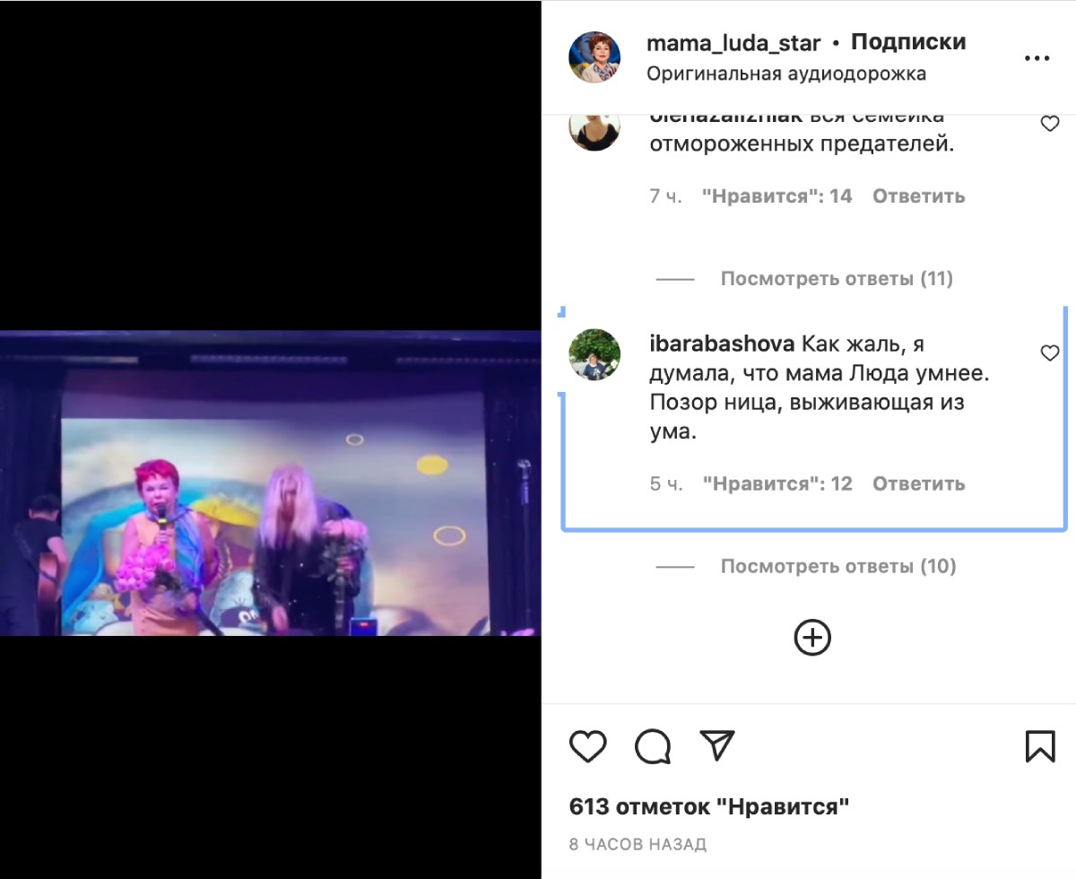 Новая выходка Людмилы Ивановны может дорого обойтись ее дочке. На странице Порывай в соцсети народ уже обсуждает возможные санкции. «Конец карьере дочки и внучка»; «Ничего себе... ничего не понимаю... если честно. А как же дочурка с зятем?»; «Круто подставила дочку», «Как жаль, я думала, что мама Люда умнее. Позорница, выживающая из ума», — написали фолловеры в комментариях под видеозаписью артистки. Порывай гонят из США в Россию.