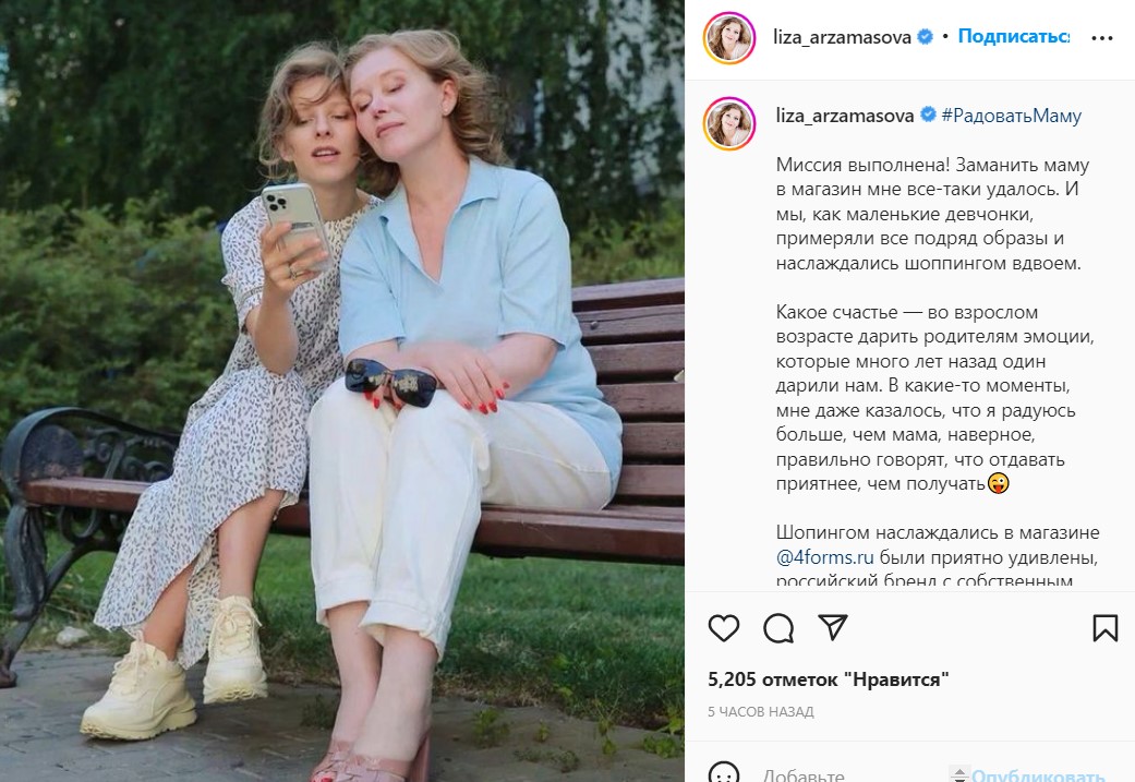 Повзрослевшая актриса, встав на ноги, справедливо решила, что маму непременно нужно регулярно чем-то радовать. Время от времени Елизавета вместе с родительницей выбирается на прогулки или шоппинг. «Заманить» маму за обновками обычно непросто, сетует артистка, но на днях ей в очередной раз удалось это сделать.