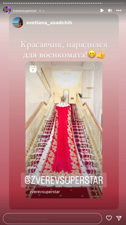 «Как вы думаете, не сильно ли вызывающе одет для военкомата?» — обратился стилист к подписчикам, продемонстрировав чинное восхождение по лестнице в мантии и короне.