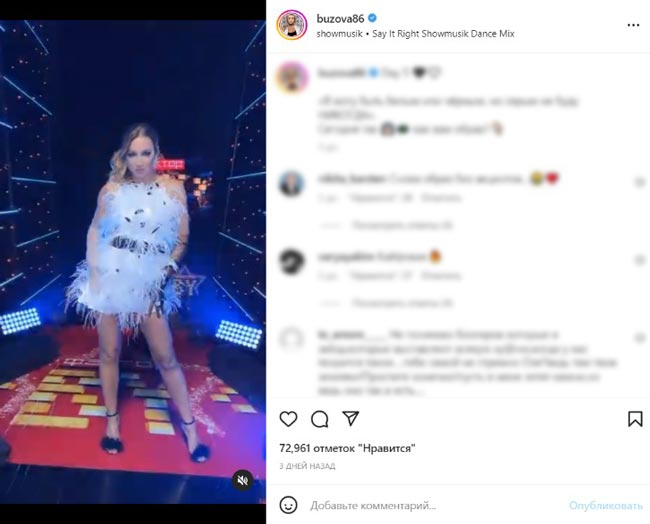 Эксперт отметила, что у Бузовой хорошая фигура: длинные ноги и тонкая талия. Однако, по мнению Гагуа, в этом наряде у звезды талия теряется.