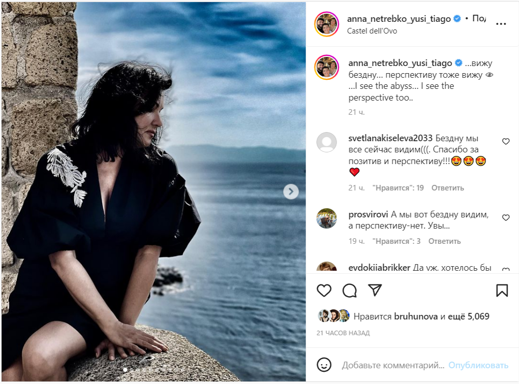 Поклонники поддержали Нетребко. Кадр показался им траурным и тревожным. Пользователи Сети отмечают, что из-за происходящего в мире сложно сохранять позитивный настрой.