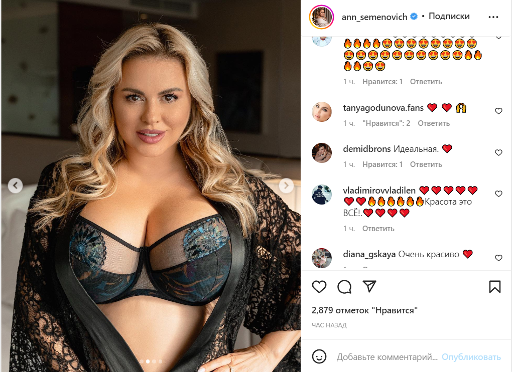У артистки действительно плотный рабочий график. С некоторых пор Анна Семенович занимается созданием нижнего белья. В личном микроблоге вокалистка показала бюстгальтеры и трусики, к дизайну которых приложила руку. Сидя на белоснежной постели, Анна нахваливала кружевной абсолютно прозрачный лифчик. Для любимых подписчиков певица примерила один из комплектов, показав внушительный бюст. Семенович, как показалось фанатам, располнела.
