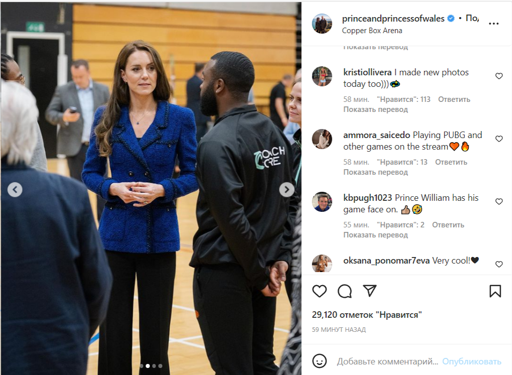 Сегодня, 13 октября, Кейт Миддлтон и принц Уильям вместе посетили лондонский спортивный центр Коппер-Бокс. Августейшая чета поддержала мероприятие собственного проекта Coach Core. Благодаря этой программе, напомним, дети и подростки из малообеспеченных семей могут заниматься спортом с профессиональными тренерами.