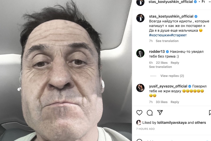 Пользователи Сети бурно отреагировали на размещенную артистом фотографию. В комментариях отметились и знаменитости. «Наконец-то увидел тебя без грима», — написал Родион Газманов. «Говорил тебе, не жри водку», — пошутил Юсиф Эйвазов. Ну а простые поклонники Костюшкина стали рассуждать по поводу возраста и его принятия в обществе.