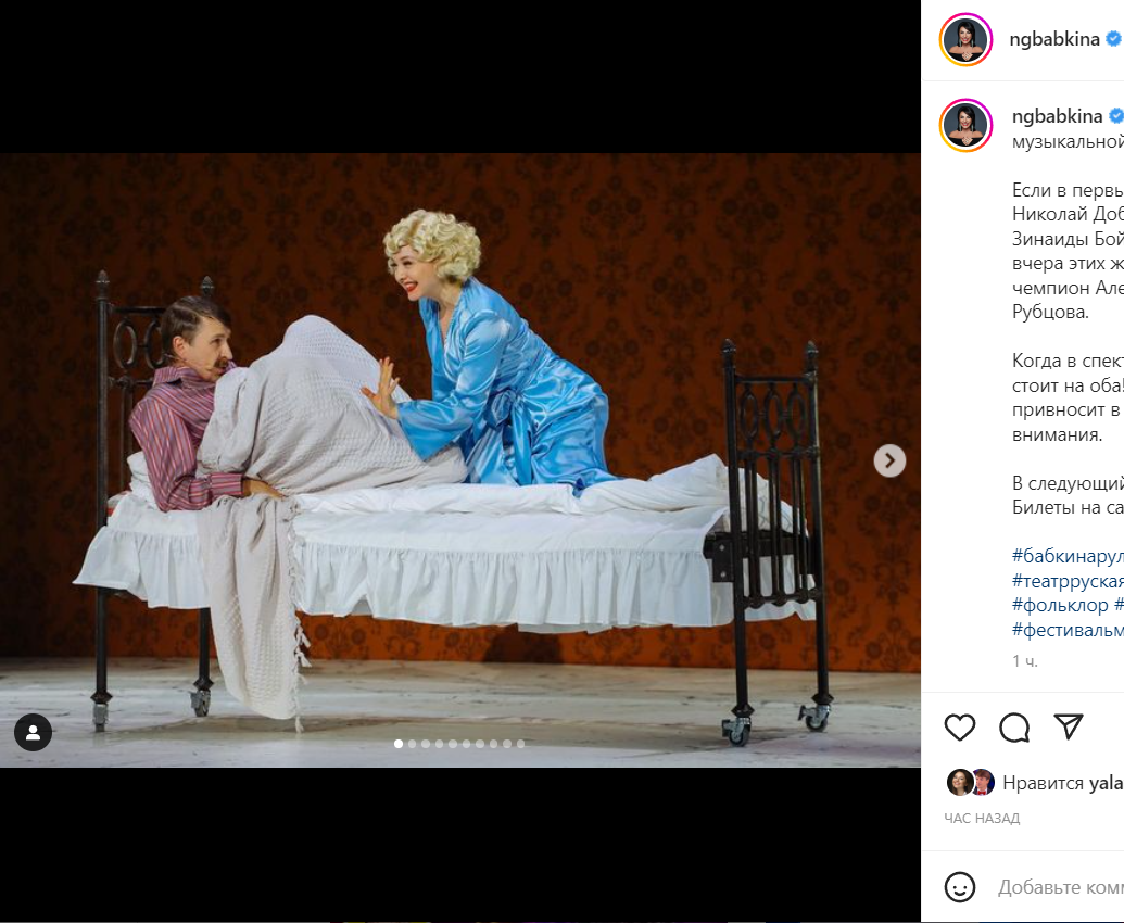 Зрители от постановки с участием фигуриста остались в полном восторге. «Прекрасный спектакль, получили большое удовольствие. Спасибо, Надежда Георгиевна», — признаются подписчики Надежды Бабкиной.