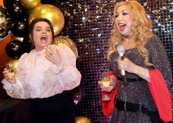 Аника Керимова в этот момент как раз рассказывала, что муж обожает дарить ей бриллианты, особенно колье. Один из примеров щедрости супруга покоился в виде сверкающей змеи на шее юбилярши.