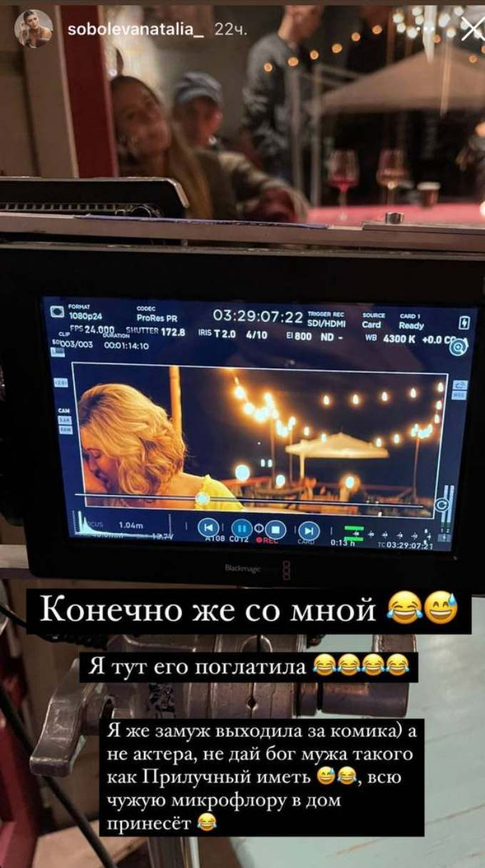 «Я же замуж выходила за комика, а не актера. Не дай бог мужа такого, как Прилучный иметь, всю чужую микрофлору в дом принесет», — заявила Соболева.