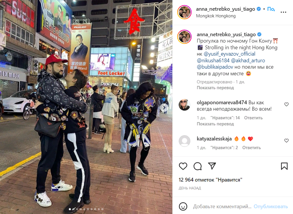51-летняя артистка поделилась подборкой фото и видео в личном микроблоге. «Прогулка по ночному Гонконгу», - подписала кадры звезды. Поклонники пришли в восторг от поста Нетребко. Однако одно фото некоторых фолловеров изрядно смутило.