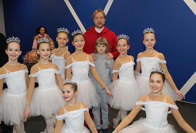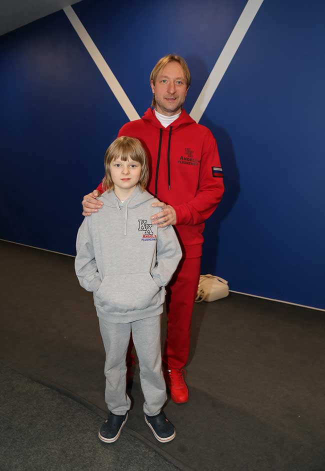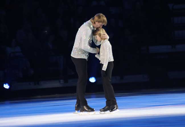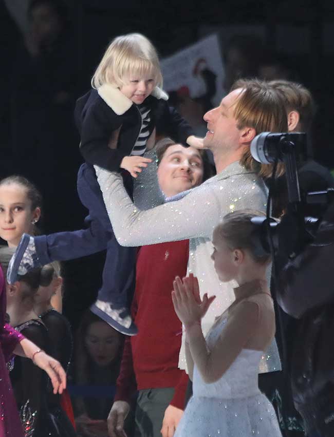 Затем к представлению подключились взрослые фигуристы и танцоры. Разумеется, вышел на лед и сам ЕВгений Плющенко. Вместе с сыном Александром они исполнили номер под песню Филиппа Киркорова «Если ты уйдешь». В нашем распоряжении появились фото с мероприятия, на которых видно, как нежно относится Евгений к наследнику. Отметим, что Плющенко вывел на лед и самого младшего сына Арсения, трогательно держа его на руках.