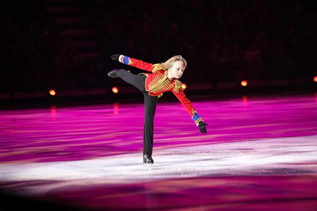 Пожалуй, это уникальный случай, когда одно шоу одновременно является и фигурным и балетным – и прежде всего это дань уважения Сергею Дягилеву и его концертам в Париже. Шоу «Союз чемпионов.Русские сезоны» началось с цитаты Сергея Павловича, танца юных балерин и выступления младшего поколения фигуристов школы Евгения Плющенко.