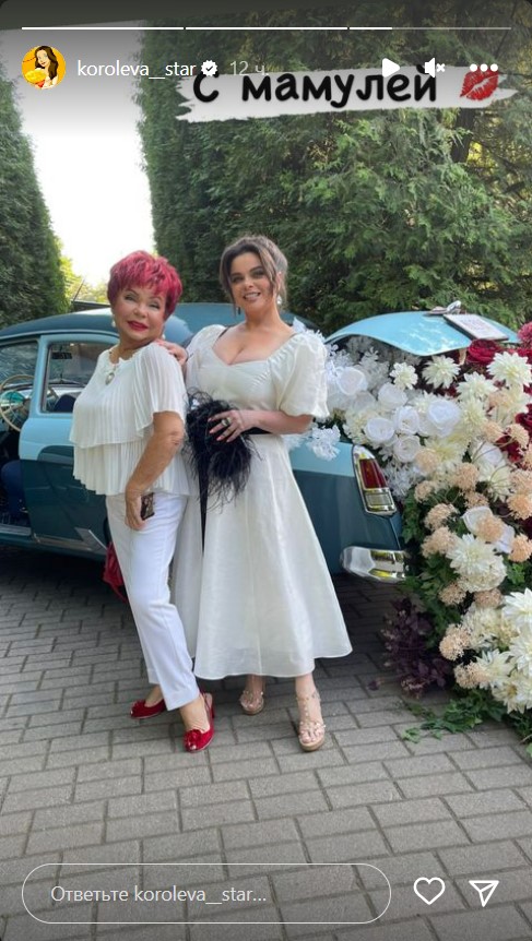Исполнительница хита «Желтые тюльпаны» же продолжает публиковать счастливые совместные снимки с мамой. На последнем кадре Королева и Порывай, одетые в белое, позируют на фоне цветов.