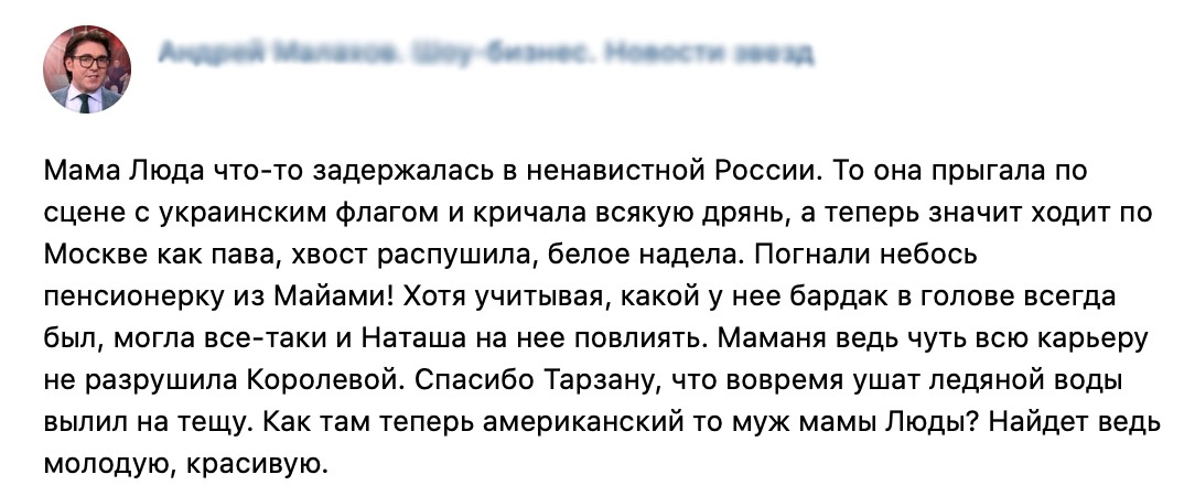 «Расцвела в ненавистной России», «Мама Люда плевала на Майами, теперь и тут неплохо, а Украина потерпит», «Двуличная тетка», - негодует публика в Сети.