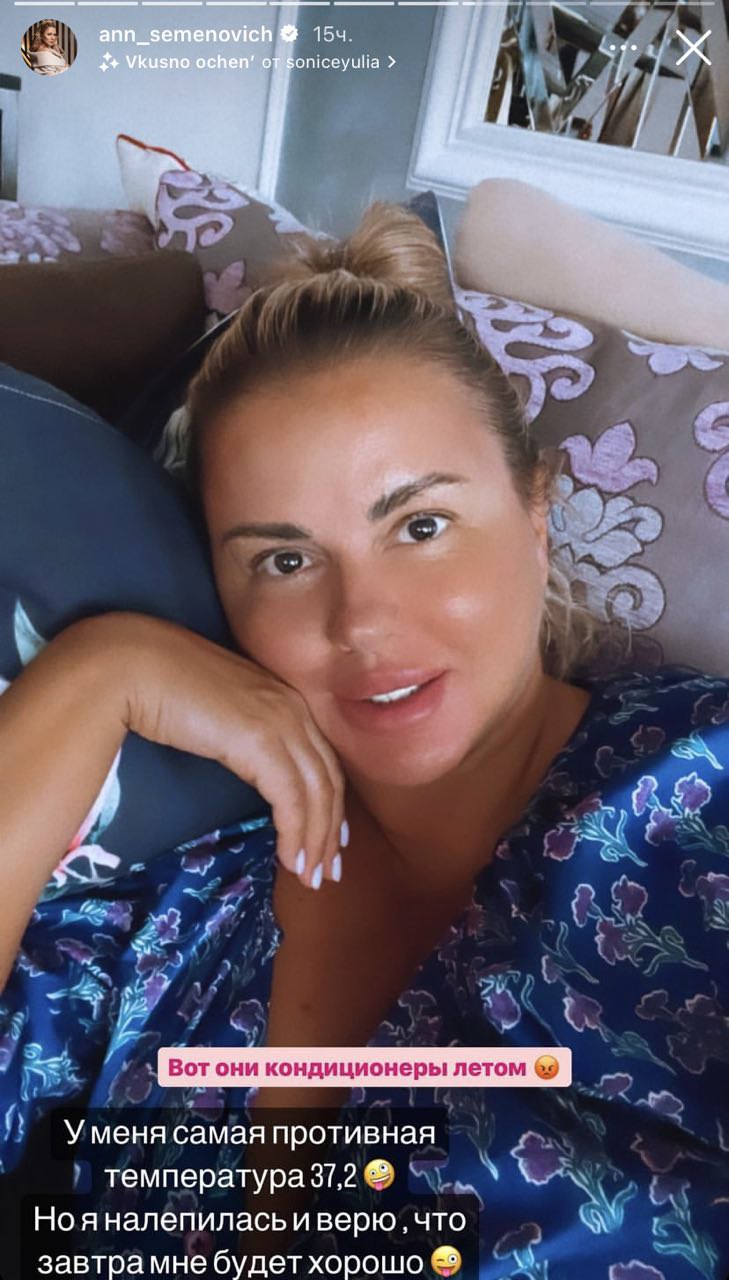 Утром Семенович проснулась с заложенным носом, разбитая. Певица пожаловалась, что ночью все время бросало в пот, она постоянно просыпалась. Тем не менее, отменять гастроли она не стала, заверив подписчиков, что взяла с собой запас препаратов и будет долечиваться в пути.