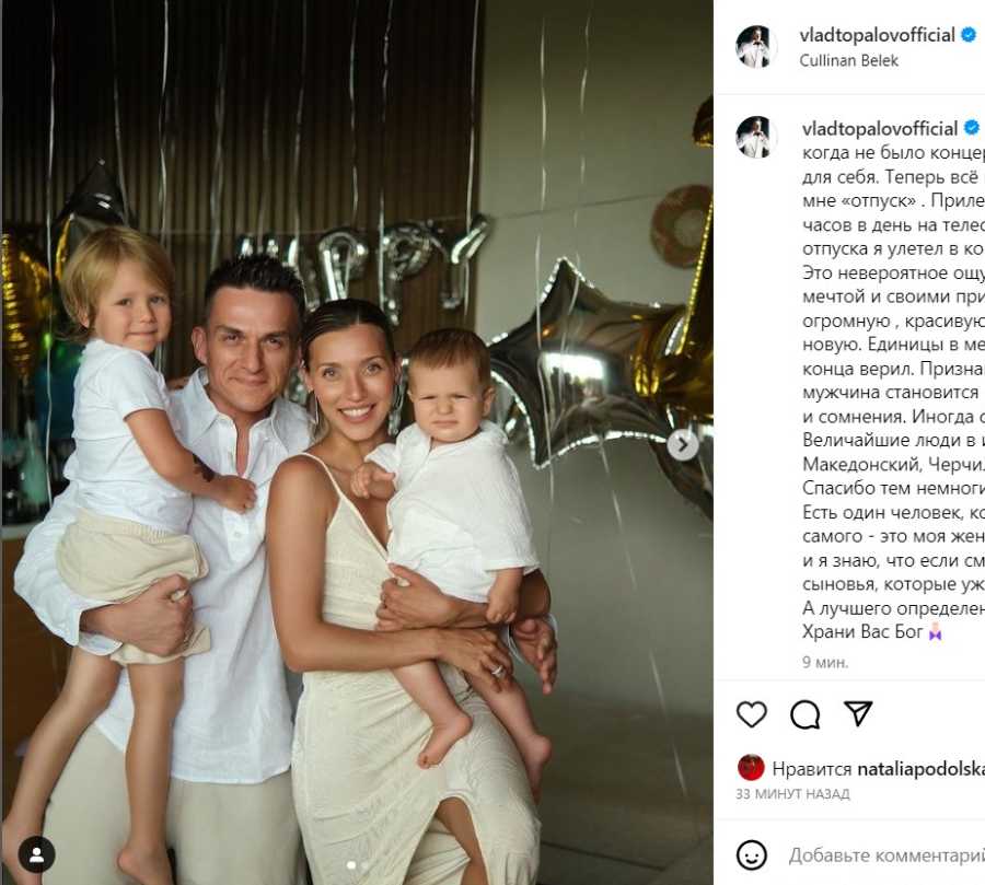 А тут заговорил и Влад Топалов. Популярный исполнитель признался, что он доволен своей жизнью, хотя раньше, до женитьбы и рождения детей, его существование было в разы легче. И все же певец ни о чем не жалеет. Об этом он сообщил в своем «Инстаграме*», опубликовав семейное фото.