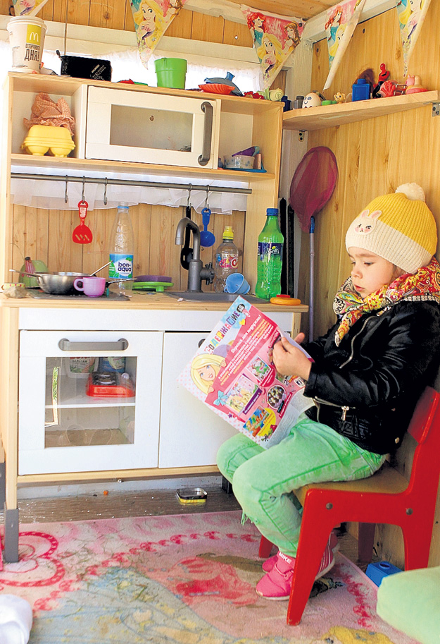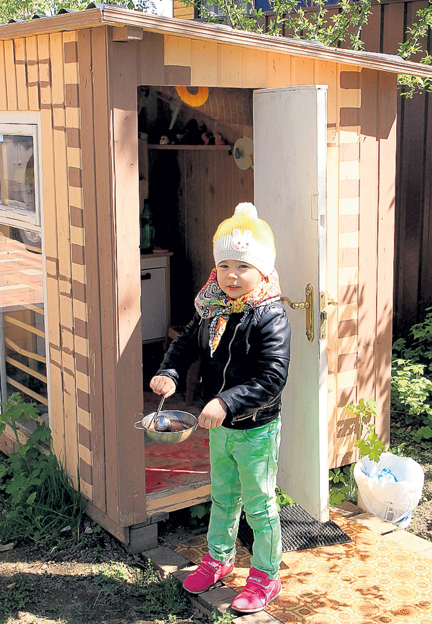 На стандартных шести сотках поместился не только уютный домик, но и, как и положено, парник, круглый стол для летних посиделок, изготовленный из огромной деревянной катушки от кабеля, и собственный игровой домик дочки Ники.