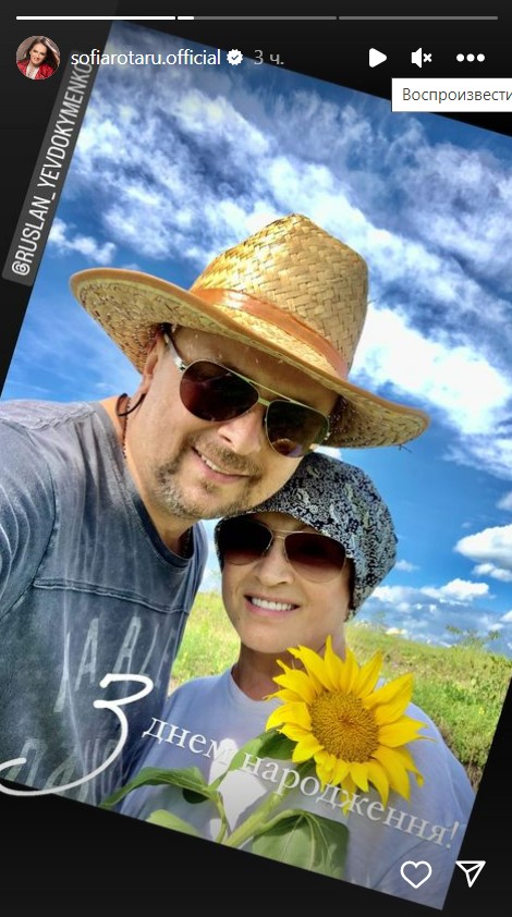 В «сториз» на странице знаменитости появилось сперва анимированное поздравление с государственным праздником, а следом и совместное семейное фото с именинником. София Михайловна прижимается щекой к сыну, оба они стоят в поле, в руках у певицы подсолнух, а на голове - косынка. «С Днем рождения!», - гласит подпись, сделанная на украинском языке.