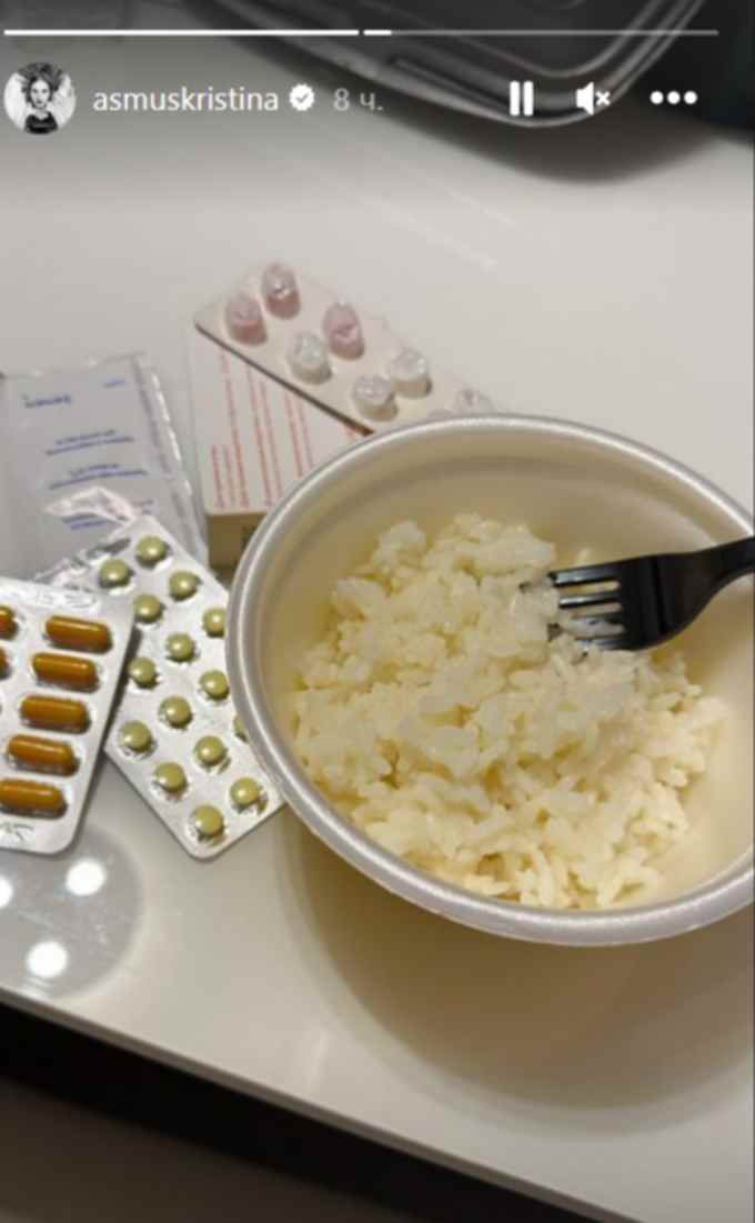 На одной из фотографий, сделанных в больнице, Кристина показала свой нынешний рацион. Помимо скудной пищи, на снимке можно заметить кучу таблеток, без которых при заболевании ротавирусной инфекции действительно никуда. Остается надеяться, что врачи и дальше позаботятся о Кристине, и она сможет как можно скорее вернуться к съемкам новых проектов.