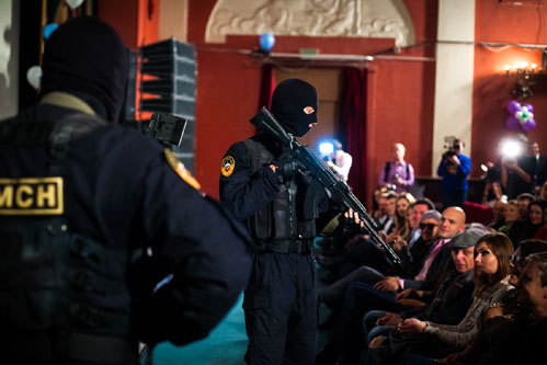 Как позже выяснилось, «ОМОН» - это всего лишь профессиональные актеры,