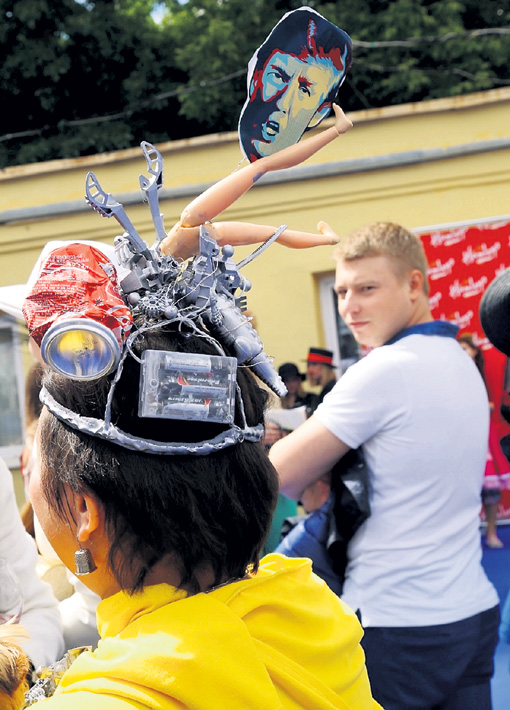 Наряженная в костюм черной вдовы, она рассказывала, что ее головной убор в виде карточной пики - вовсе не дизайнерский, а самопальный. Наивная девушка уверяла, что в ее мировоззрении пика - это перевернутое сердце.