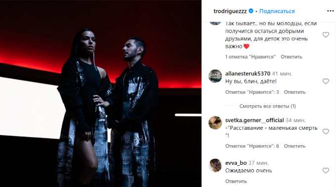 «Очень печальное известие. Счастья вам обоим!»; «На такую новость и лайк не поставишь»; «Нет, получается, вечной любви»; «Только ж годовщину отмечали ж»; «Разве так бывает? Любовь так резко исчезает?»; «Не верю. Такая любовь не может закончиться»; «Что должно случиться, чтоб так резко?»; «Очень жаль... Такая классная, гармоничная пара была»; «Шок»; «Жаль, но жизнь продолжается», — пишут расстроенные пользователи Сети.