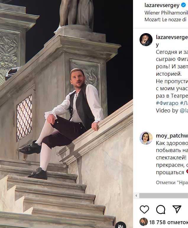 «Сегодня и завтра в последний раз сыграю Фигаро! 10 лет я играл эту роль! И завтра это станет уже историей. Не пропустите! Финальные спектакли с моим участием! Они пройдут в этот раз в Театре Российской Армии».
