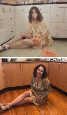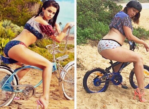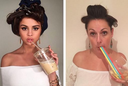 А этой самой фотогеничности и умению позировать может позавидовать даже модели Victoria’s Secret, которые демонстрируют на подиуме нижнее белье и купальники. В присущем ей юмористическом ключе Селеста демонстрирует, как выглядели бы манекенщицы в образе обычной домохозяйки.