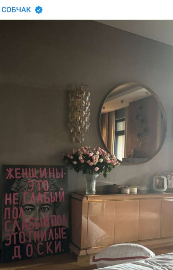 «Один из подарков мне на др от мужа — вот эта прекрасная картина. Я, кстати, очень люблю ставить картины на пол. А вы?» — поделилась фотографией явно довольная Ксения Анатольевна.