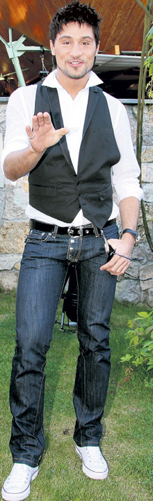 Стилист: Дима модно и ярко выглядит, что бы он ни надел. В данном случае микс из строгой рубашки с жилеткой и джинсов смотрится очень актуально. Хочется убрать ремень, так как он визуально разрезает фигуру пополам. Рекомендую со светлой обувью носить светлые джинсы, например, голубого цвета - это позволит визуально вытянуть фигуру и будет смотреться более выигрышно. В данном случае можно оставить эти джинсы, заменив обувь на более темную.