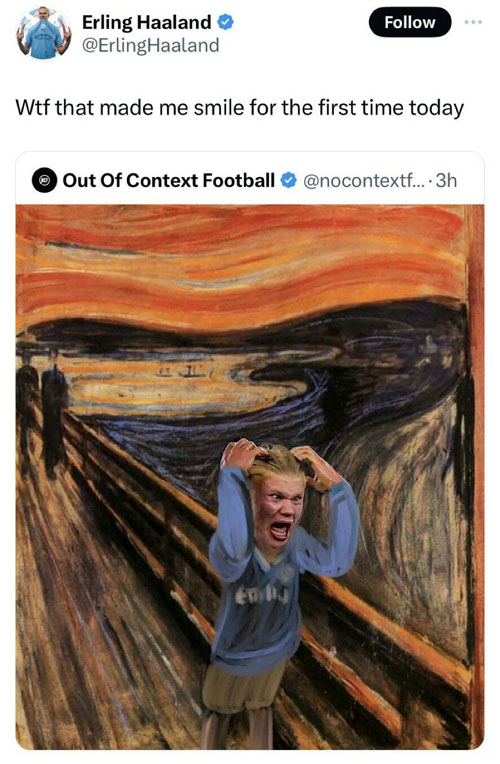 Нападающий «Манчестер Сити» Эрлинг Холлан готов был растерзать судью Саймона Хупера, который на четвертой добавленной минуте при счете 3:3 ненужным свистком сорвал выход Джека Грилиша один на один. Еще несколько минут Холлан орал на судью матом, а затем продолжил нецензурные оскорбления в интернете.