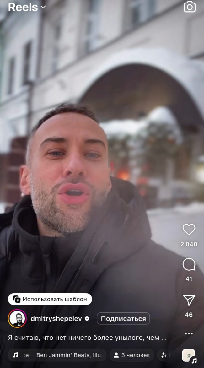 «Я считаю, что нет ничего более унылого, чем отмечать Новый год в жарких странах, простите меня, дачники на Бали, в Дубае или Таиланде. Я понимаю, что четыре слоя одежды тоже не для каждого, а мне все же милее», - выдал Шепелев.