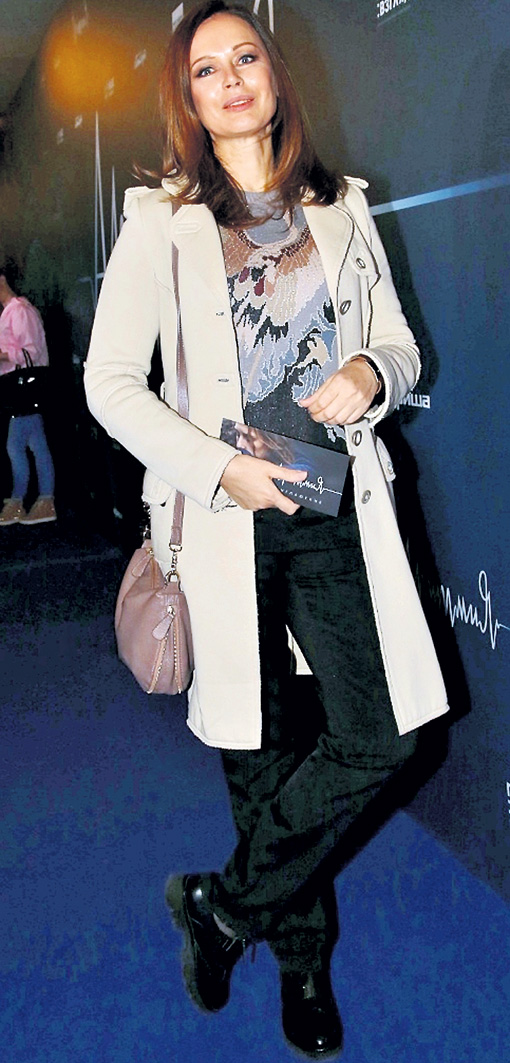 Стилист: Меня сильно смущает сочетание брюк-алладинов и топа светской Марии-Антуанетты. В целом черное пальто к ним хорошо подходит, но выглядит чересчур траурно. Никаких деталей: ни пояса, ни интересной отделки. Поэтому привлекательным я не могу его назвать. Столь светлые шпильки тут ничем не оправданы. Если Ане страстно хотелось чего-то нежненького на ножках, то стоило бы выбрать, скажем, сиреневый.
