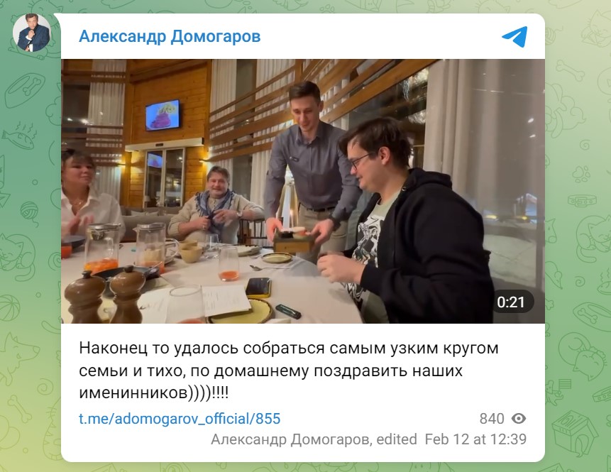 «Наконец-то удалось собраться самым узким кругом семьи и тихо, по-домашнему поздравить наших именинников!», - объявил артист.