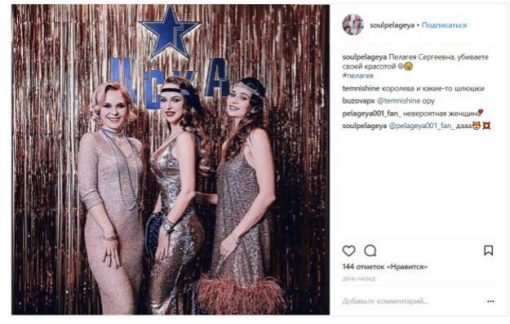 Новоиспеченная мама и супруга хоккеиста Ивана Телегина Пелагея не могла пропустить вечеринку, на которой присутствовали все сливки российской хоккейной команды ЦСКА. Однако внимание репортеров было приковано не к игрокам клуба, а к их женам и подругам, которые потратили крупную сумму, готовясь к светскому мероприятию. Платья светских львиц украшали стразы и пайетки, от блеска и шика у многих присутствующих «слепило в глазах».