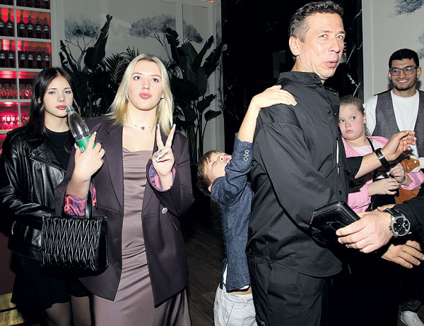 Многодетный Андрей Мерзликин привел в кино дочек Серафиму и Евдокию и сына Макара, который не отлипал от отца.