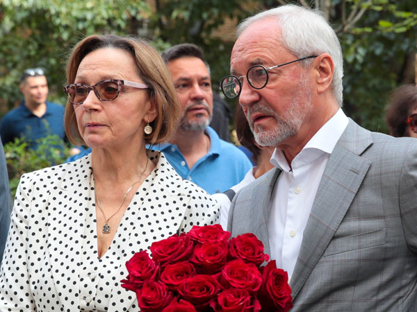Открытие доски пришлось на теплый осенний день. Столбик термометра поднялся до 25 градусов. Ирина Петровна выглядела чудесно: была в легком светлом костюме и пиджаке в горошек. При этом сын Купченко и Ланового резко контрастировал с матерью: 50-летний Александр оделся как на полюс и стоял на жаре в теплой кепке и синей курточке на клепках.