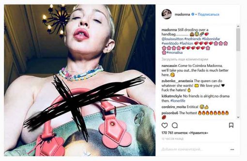 Многие подписчики Мадонны осудили такую откровенную, пусть и отредактированную фотографию. «Не лучшее фото, что я видел». «Если бы я был твоим другом, я бы посоветовал не постить такой снимок», — обращается к артистке один из комментаторов (перевод — EG.ru).