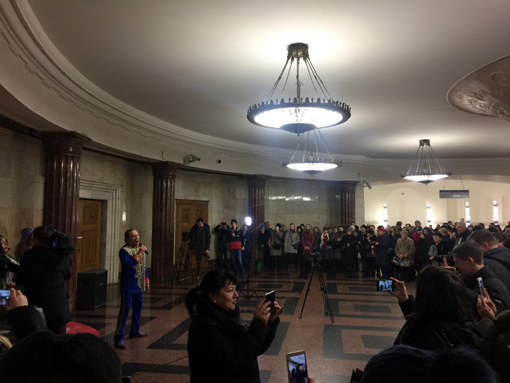 Практически весь вестибюль наводнили благодарные слушатели, чуть было, не парализовав движение пассажиров.