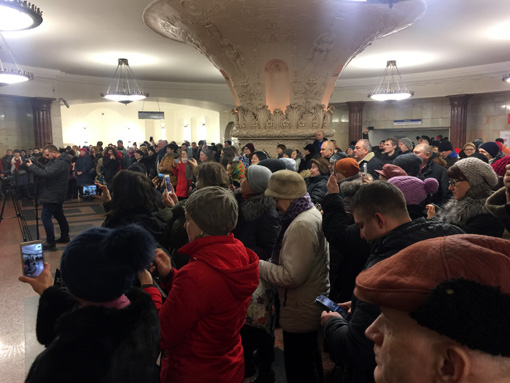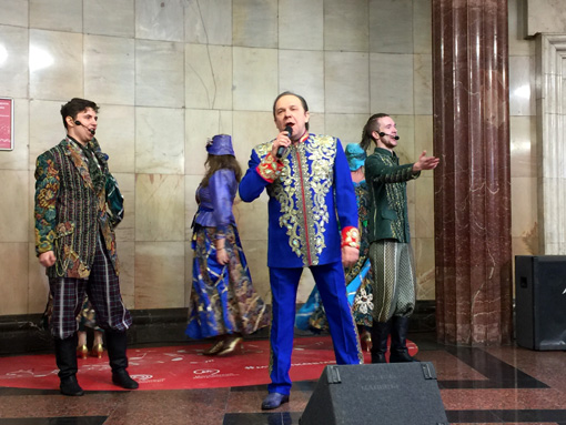 Трудно было предположить, что соберется такая огромная толпа зрителей! Ведь люди в метро куда-то бегут, торопятся по своим делам - это же не концертный зал, тут своя специфика.Но вопреки опасениям организаторов флешмоба в рамках нового проекта народного артиста России Владимира ДЕВЯТОВА, людей набралось внушительное количество, как только по толпе эхом разошелся слух, кто сейчас будет петь.