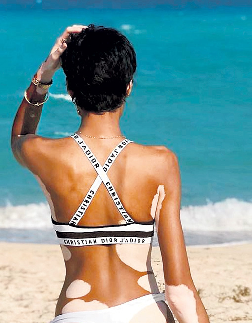 Винни Харлоу страдает редким врожденным заболеванием кожи - витилиго. Нарушение пигментации сделало тело девушки пятнистым, словно у леопарда. Она научилась принимать себя такой, какой ее создала природа, и даже сделала успешную карьеру в модельном бизнесе. Но на публике обнажаться решается редко. К тому же кожа Винни нуждается в особой защите от солнечных лучей. И все же она решилась показаться в бикини на пляже Майами. Смелость и снимки точеной фигурки девушки лайкнули в «Инстаграме**» многие тысячи ценителей прекрасного и своеобразного.